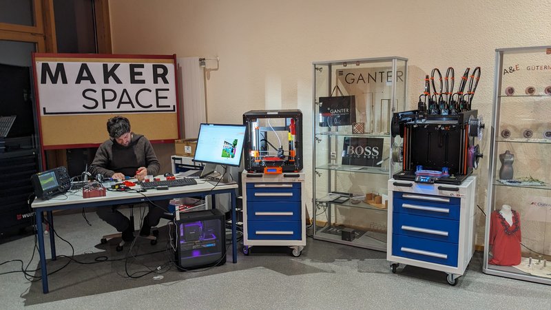 Im weiteren Verlauf des Abends erhielten die Besucher*innen die Gelegenheit, verschiedene Stationen anzusteuern, an denen Schulfächer, der gezielte Einsatz von Tablets im Unterricht, Projekte, außerschulische Aktivitäten und Initiativen der Schule präsentiert wurden. Ein Publikumsmagnet war hierbei der sogenannte Makerspace, ein futuristisch anmutender Kreativraum mit 3D-Druckern, einem Lasercutter und weiteren modernen Technologien, der Schüler*innen und Lehrkräften die Gelegenheit bietet, mit verschiedenen Hightech-Werkzeugen zu arbeiten und individuelle Projekte in die Tat umzusetzen – vom selbst designten Schlüsselanhänger bis hin zur kreativ gestalteten Lampe. Möglich macht dies die erfolgreiche Teilnahme des BSZ am landesweiten Projekt „Innovationslabor Berufliche Schulen“ (innolabBS) des Kultusministeriums.