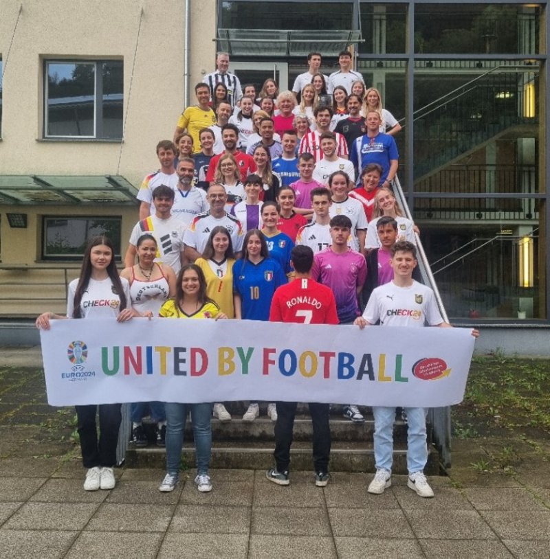 Um ein starkes Zeichen für Gemeinschaft und Zusammenhalt zu setzen kleideten sich Schüler:innen und Lehrer:innen in Trikots verschiedenster Fußballnationalmannschaften oder Vereinen zum Auftakt der heute beginnenden EM in Deutschland. Dies passte perfekt zu den Grundsätzen des BSZ Waldkirch, das sich stolz als "Schule ohne Rassismus – Schule mit Courage" und als "Grenzenlos Schule" bezeichnet.