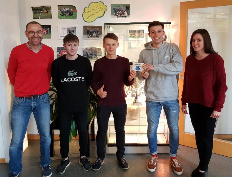 Im Rahmen des Projektthemas "gegen Rassismus im Sport" von Schülern der Klasse 1BK2W2 wurde zum Abschluss der Projektarbeit eine Kapitänsbinde für die Fußballmanschaft der Schule entworfen. Diese wurde an die Kapitäne der Teams übergeben, um bei Turnieren getragen werden zu können.